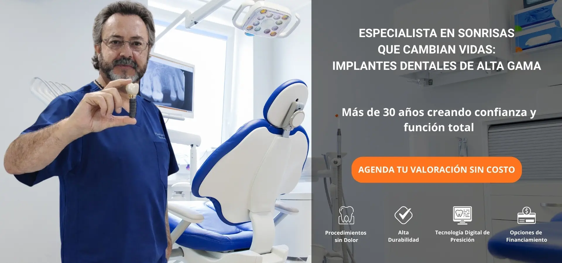 Bajo la dirección del Dr. Ricardo Molina, especialista en implantes dentales y rehabilitación oral con más de 30 años de experiencia, ofrecemos soluciones definitivas que devuelven la función y estética dental a nuestros pacientes. Con una trayectoria comprobada y cientos de casos de éxito, nuestro enfoque combina tecnología de vanguardia y materiales de alta calidad para garantizar resultados precisos y duraderos.